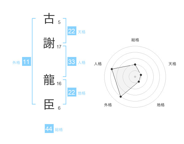 古謝 龍臣さんを姓名の画数から五運を鑑定