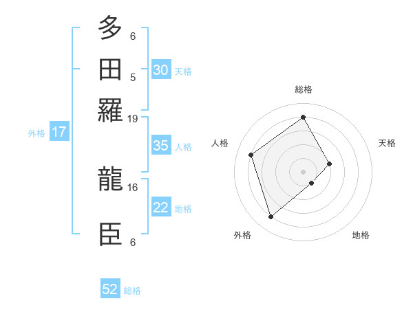 多田羅 龍臣さんの総格は52画の4点!