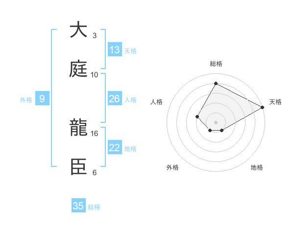 大庭 龍臣さんを姓名の画数から五運を鑑定