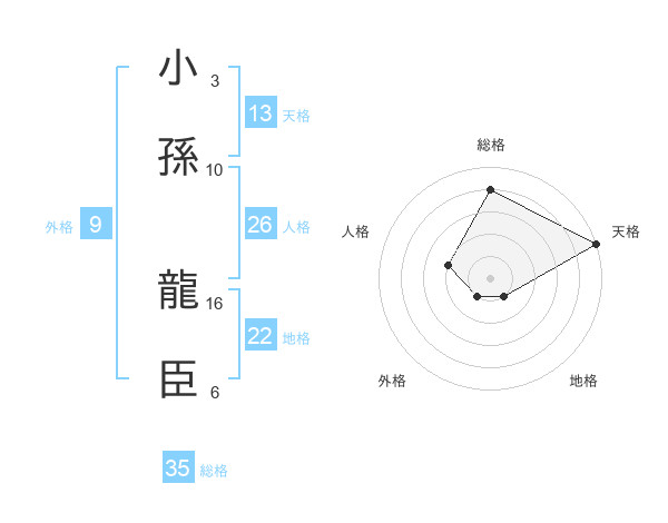 小孫 龍臣さんを姓名の画数から五運を鑑定