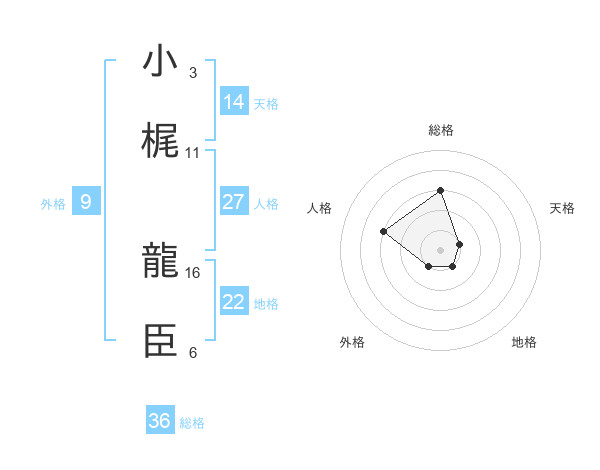 小梶 龍臣さんの総格は36画の3点!