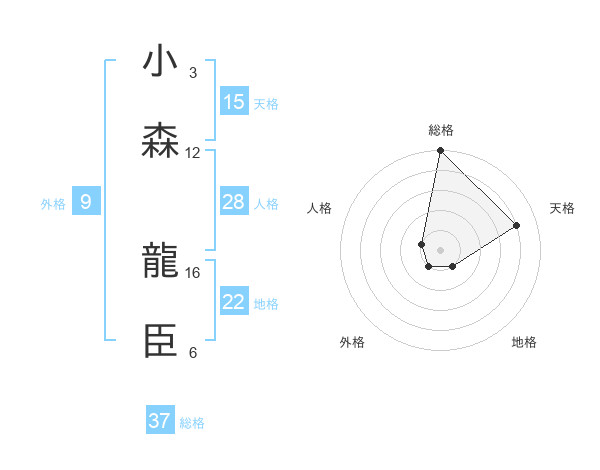 小森 龍臣さんの総格は37画の5点!