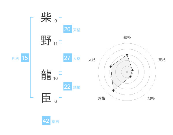 柴野 龍臣さんを姓名の画数から五運を鑑定