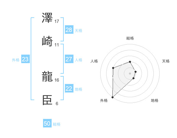 澤崎 龍臣さんの総格は50画の2点!