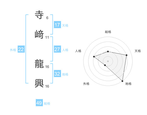 寺﨑 龍興さんを姓名の画数から五運を鑑定