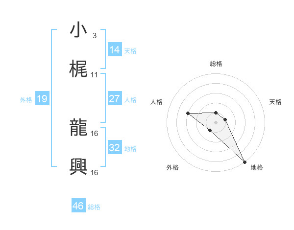 小梶 龍興さんの総格は46画の1点!