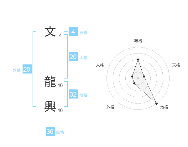 文 龍興さんの総格は36画の3点!