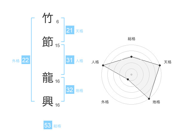 竹節 龍興さんを姓名の画数から五運を鑑定