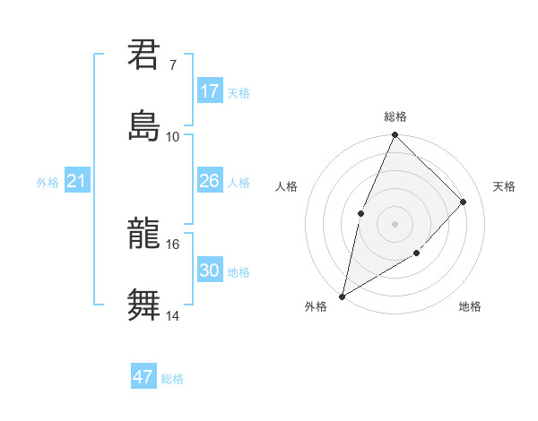 君島 龍舞さんを姓名の画数から五運を鑑定
