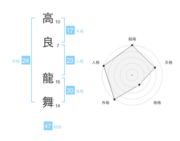 高良 龍舞さんの総格は47画の5点!