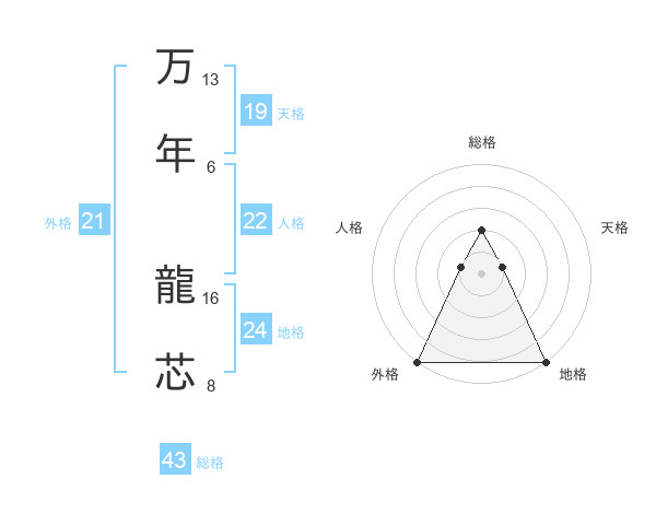 万年 龍芯さんの総格は43画の2点!