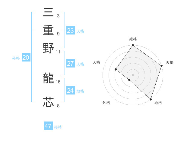 三重野 龍芯さんを姓名の画数から五運を鑑定