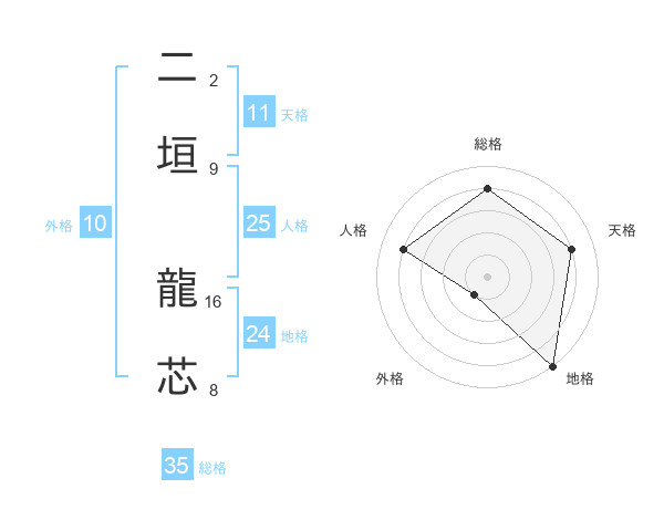 二垣 龍芯さんを姓名の画数から五運を鑑定