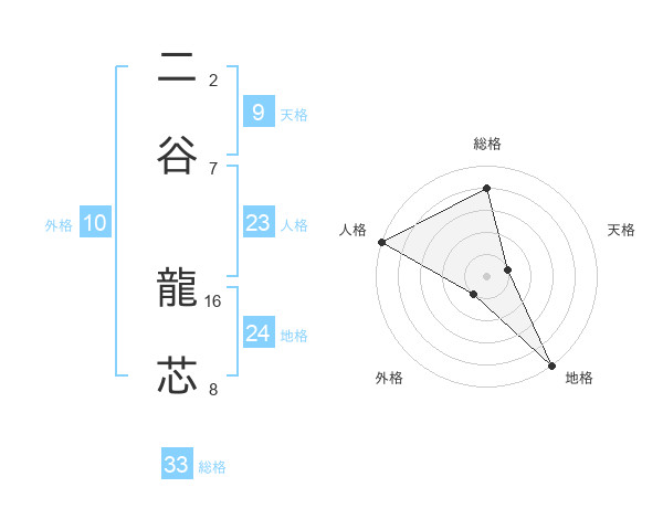 二谷 龍芯さんを姓名の画数から五運を鑑定