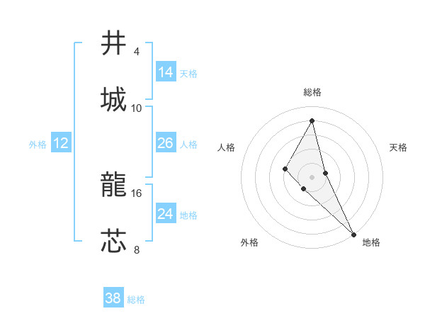 井城 龍芯さんの総格は38画の4点!