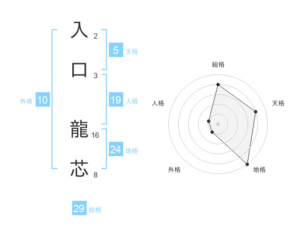 入口 龍芯さんを姓名の画数から五運を鑑定