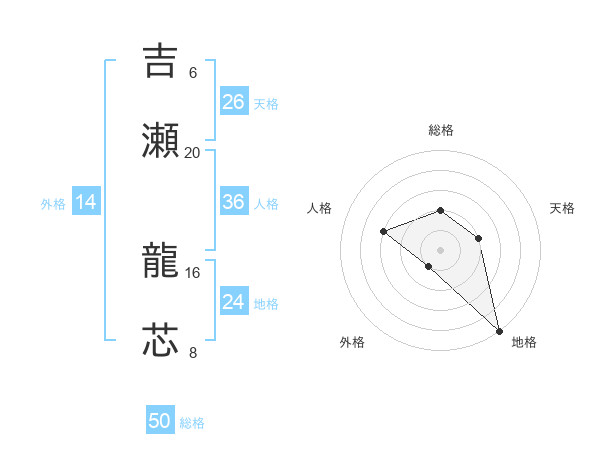 吉瀬 龍芯さんを姓名の画数から五運を鑑定