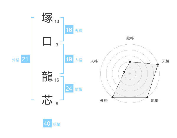 塚口 龍芯さんの外格は21画の5点!
