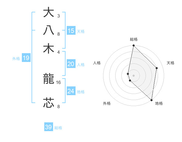 大八木 龍芯さんの総格は39画の5点!