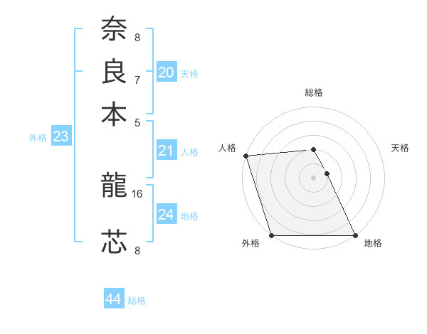 奈良本 龍芯さんの総格は44画の2点!