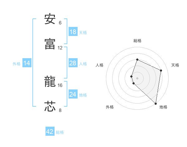 安富 龍芯さんの総格は42画の3点!