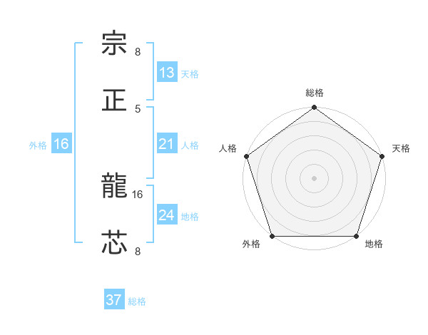 宗正 龍芯さんを姓名の画数から五運を鑑定