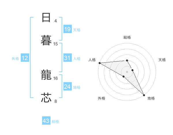 日暮 龍芯さんを姓名の画数から五運を鑑定