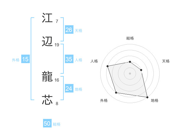 江辺 龍芯さんの総格は50画の2点!