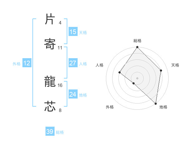 片寄 龍芯さんの総格は39画の5点!