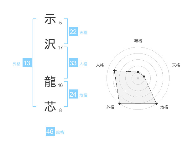 示沢 龍芯さんの外格は13画の5点!