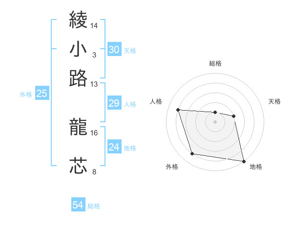 綾小路 龍芯さんの総格は54画の1点!