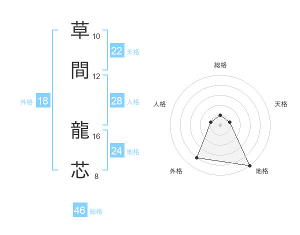 草間 龍芯さんを姓名の画数から五運を鑑定