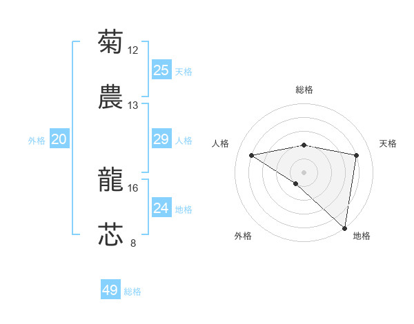 菊農 龍芯さんの天格は25画の4点!