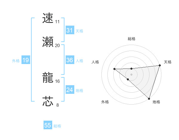 速瀬 龍芯さんの総格は55画の1点!