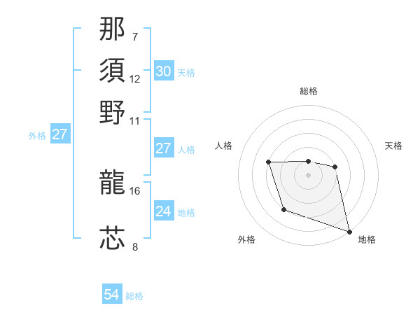 那須野 龍芯さんを姓名の画数から五運を鑑定