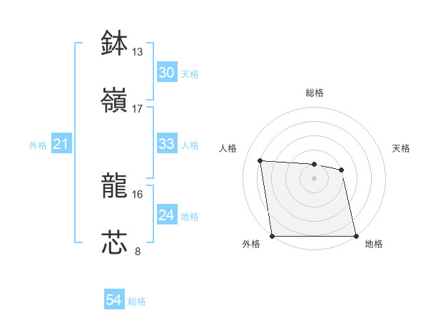 鉢嶺 龍芯さんの名前の鑑定結果は!