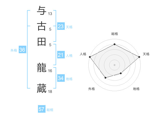 与古田 龍蔵さんを姓名の画数から五運を鑑定