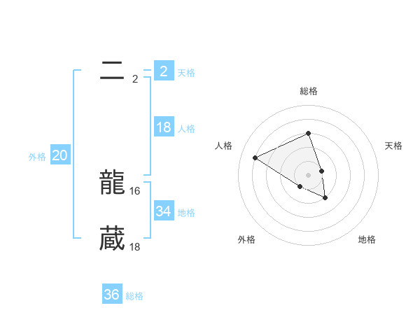二 龍蔵さんの外格は20画の1点!