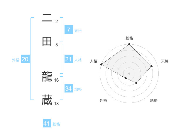 二田 龍蔵さんを姓名の画数から五運を鑑定