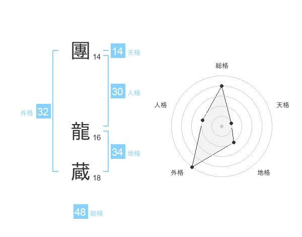 團 龍蔵さんを姓名の画数から五運を鑑定