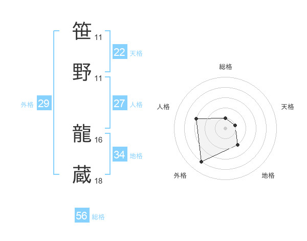 笹野 龍蔵さんを姓名の画数から五運を鑑定