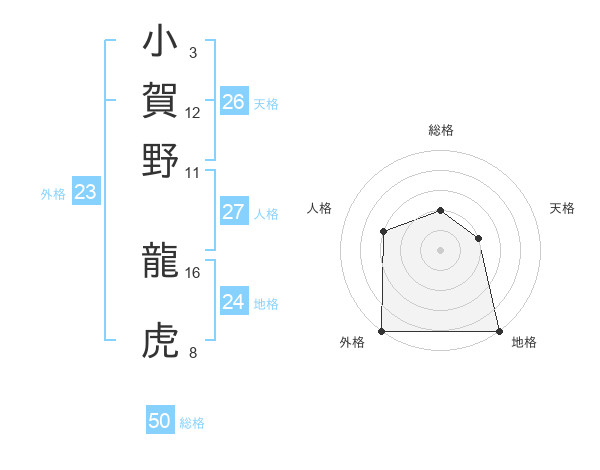 小賀野 龍虎さんの外格は23画の5点!