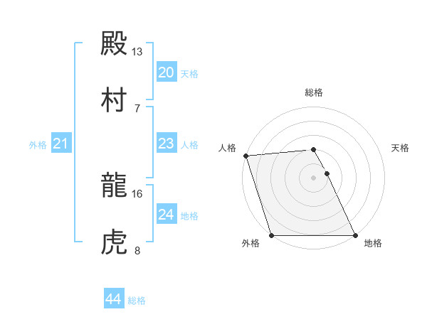 殿村 龍虎さんを姓名の画数から五運を鑑定