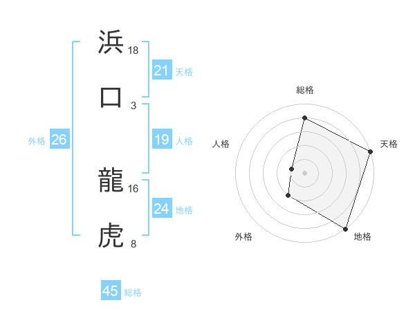 浜口 龍虎さんを姓名の画数から五運を鑑定