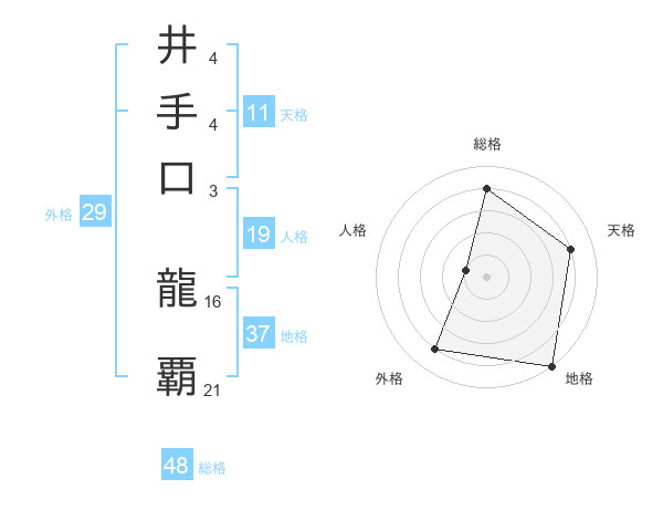 井手口 龍覇さんを姓名の画数から五運を鑑定