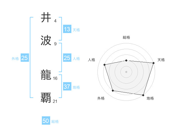 井波 龍覇さんを姓名の画数から五運を鑑定