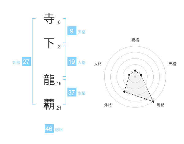 寺下 龍覇さんを姓名の画数から五運を鑑定