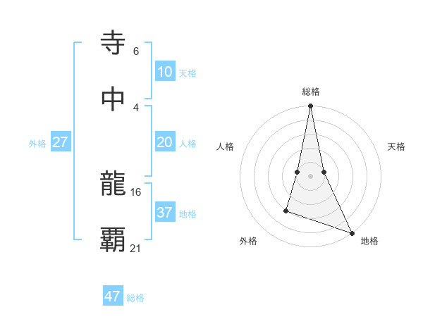 寺中 龍覇さんの総格は47画の5点!