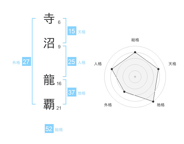 寺沼 龍覇さんの総格は52画の4点!