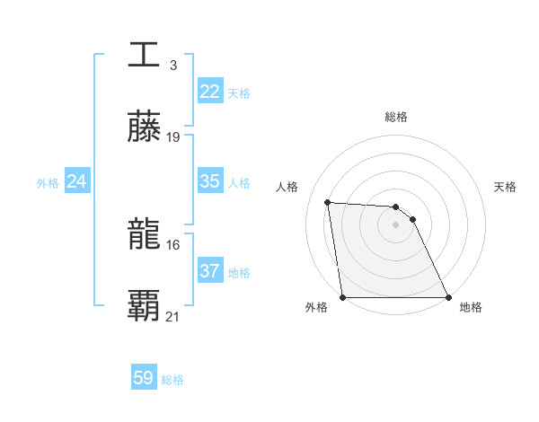 工藤 龍覇さんを姓名の画数から五運を鑑定